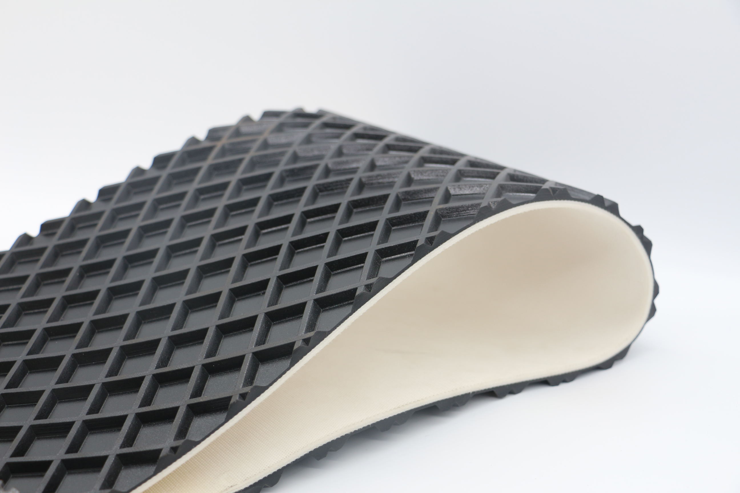 打滑主要源于输送带张力不足、表面摩擦系数降低或负载超过额定值。解决办法:1. 调整张紧装置增加张力(避免过度张紧导致寿命缩短);2. 选择带防滑花纹的PVC输送带(如安耐的菱形格、鱼骨纹花纹带),提升表面摩擦系数;3. 控制负载在额定范围内(安耐PVC输送带承载可达50kg/㎡);4. 若输送带表面沾有油污,及时清理以恢复摩擦系数。