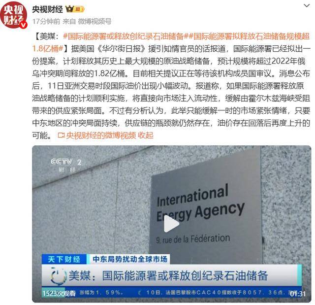 据美国《华尔街日报》援引知情官员的话报道,国际能源署已经拟出一份提案,计划释放其历史上最大规模的原油战略储备,预计规模将超过2022年俄乌冲突期间释放的1.82亿桶。目前相关提议正在等待该机构成员国审议。